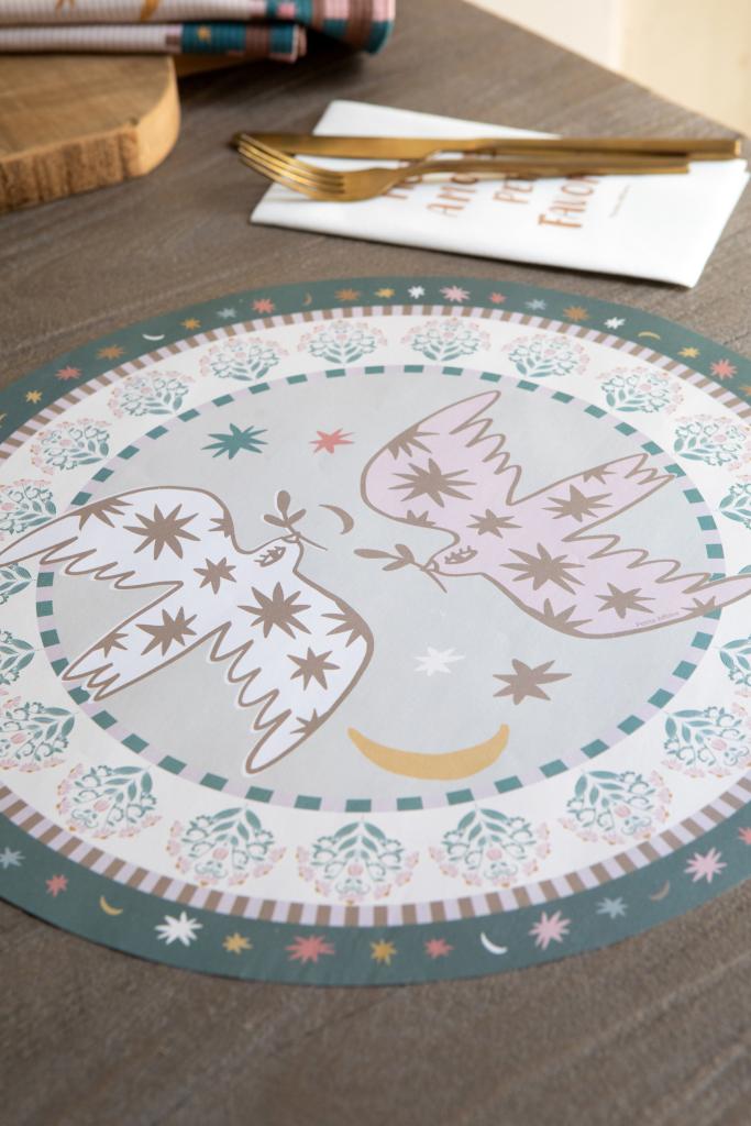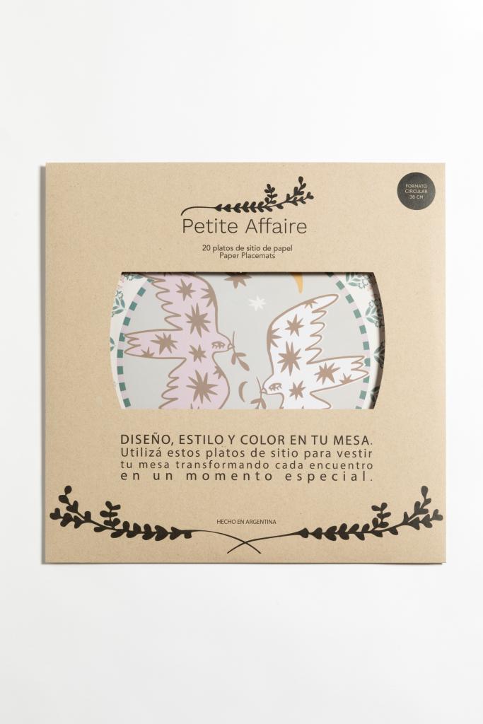 Presentación: 20 platos de sitio en papel obra sustentable, en sobre de papel kraft.