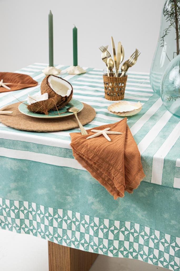 Esta estampa a cuadros en color Moka lo hace ser un mantel atemporal, clásico y verátil. De género noble, suave al tacto, puede lavarse con facilidad.