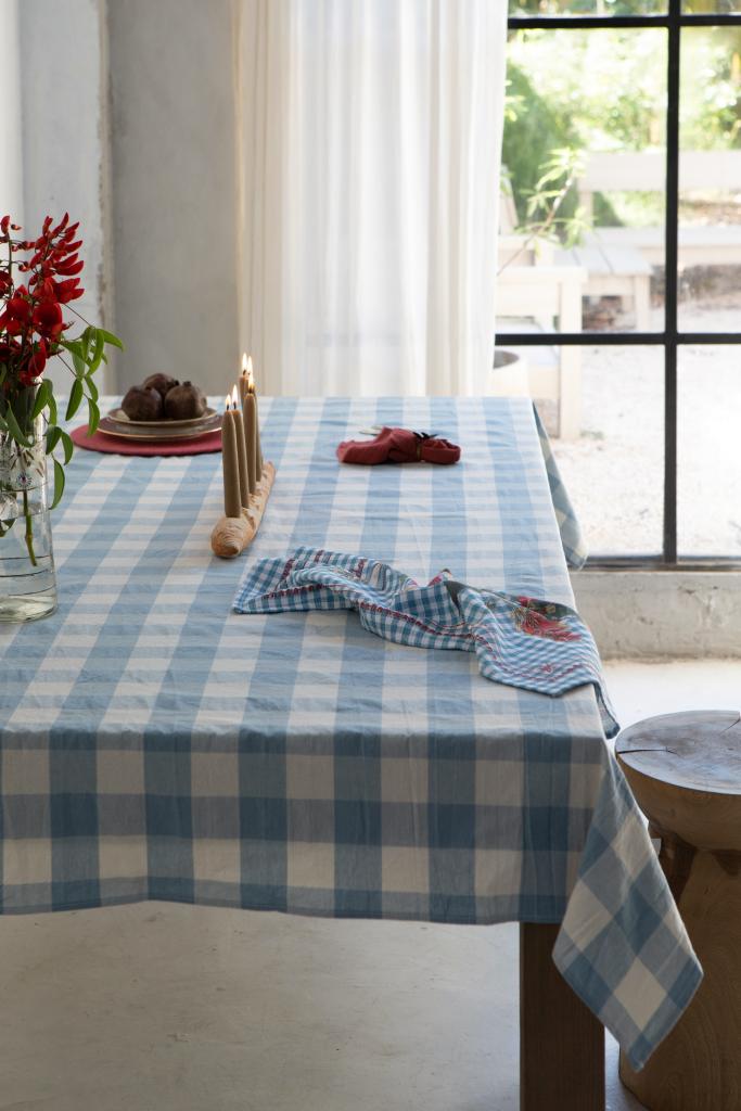 Su diseño a cuadros en tonos suaves aporta frescura y calidez al mismo tiempo, perfecto para mesas relajadas pero bien pensadas.