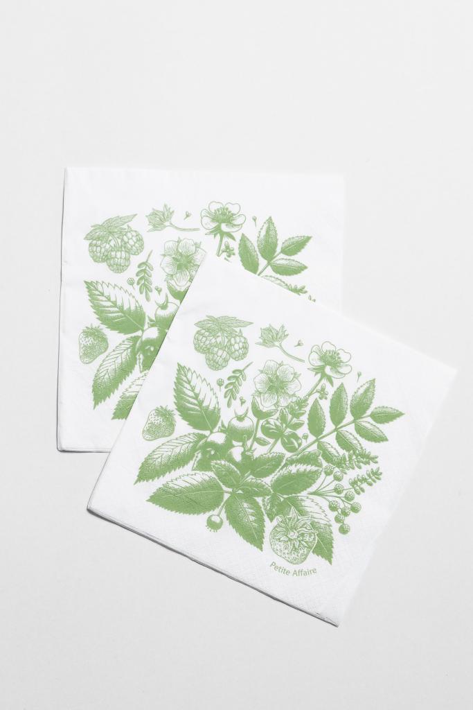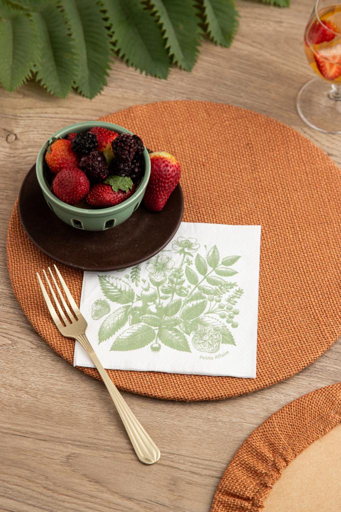 Servilleta de papel tissue doble pliego de 18 grs. con estampa de frutos rojos, para combinar con pack papel Fragola